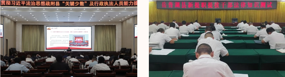 提高各级领导干部法治素养。喀什地区出台《喀什地区领导干部学法讲法述法考法实施方案》《“学法律、塑品格、知敬畏、护稳定”为主题法律知识学习宣传教育活动实施方案》,组织全地区干部利用“法宣在线”“学习强国”等平台,以考促学,全地区2000余家单位10.47万余人参加考试,及格率高达99.81%。积极组织开展“三个一”活动,组织习近平法治思想专题党委(党组)理论学习2800余场次、党政主要负责人法治宣讲8600余场次、现场或网络旁听庭审活动3.5万余场次。