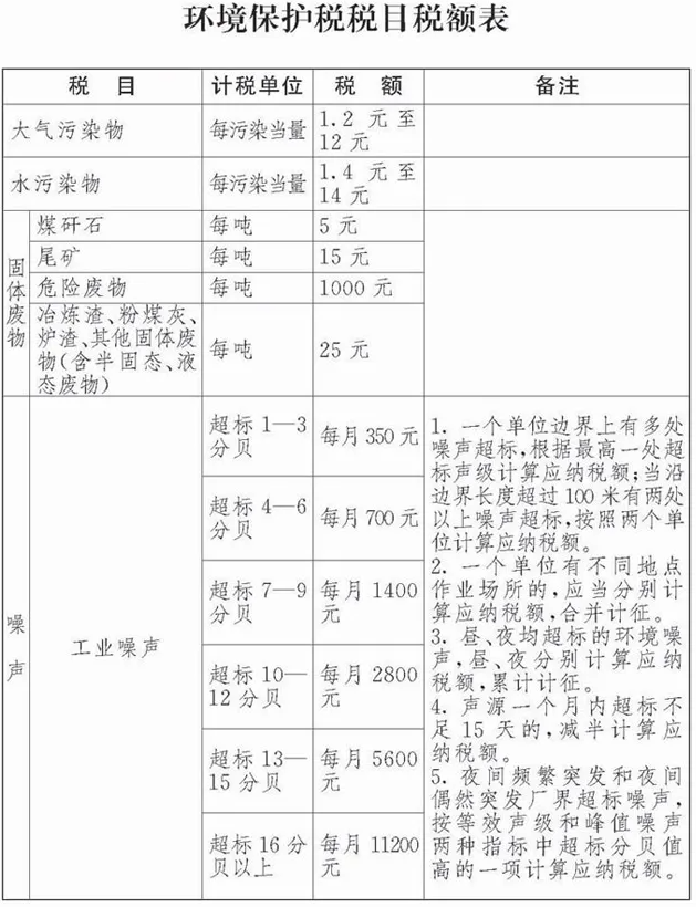 第六条 环境保护税的税目、税额,依照本法所附《环境保护税税目税额表》执行。