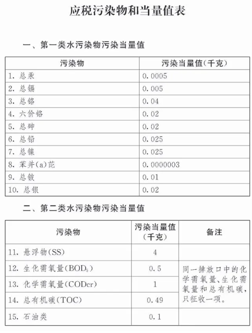 (二)应税水污染物按照污染物排放量折合的污染当量数确定;