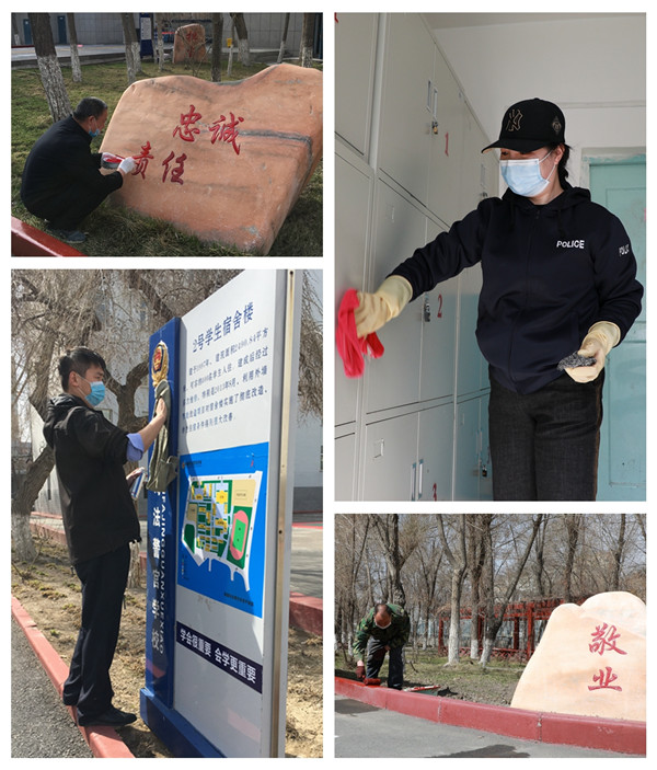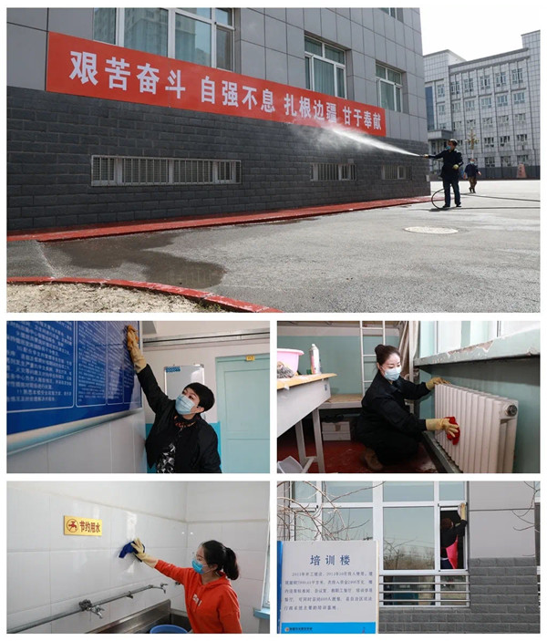 学校利用开学前一周时间组织教职工开展校园环境卫生整治工作,教室、宿舍、食堂、水房……校园内外角角落落,都留下大家辛勤劳动的身影,全覆盖、无死角、无盲区,为返校学警“打造”干净整洁安全的学习生活环境。