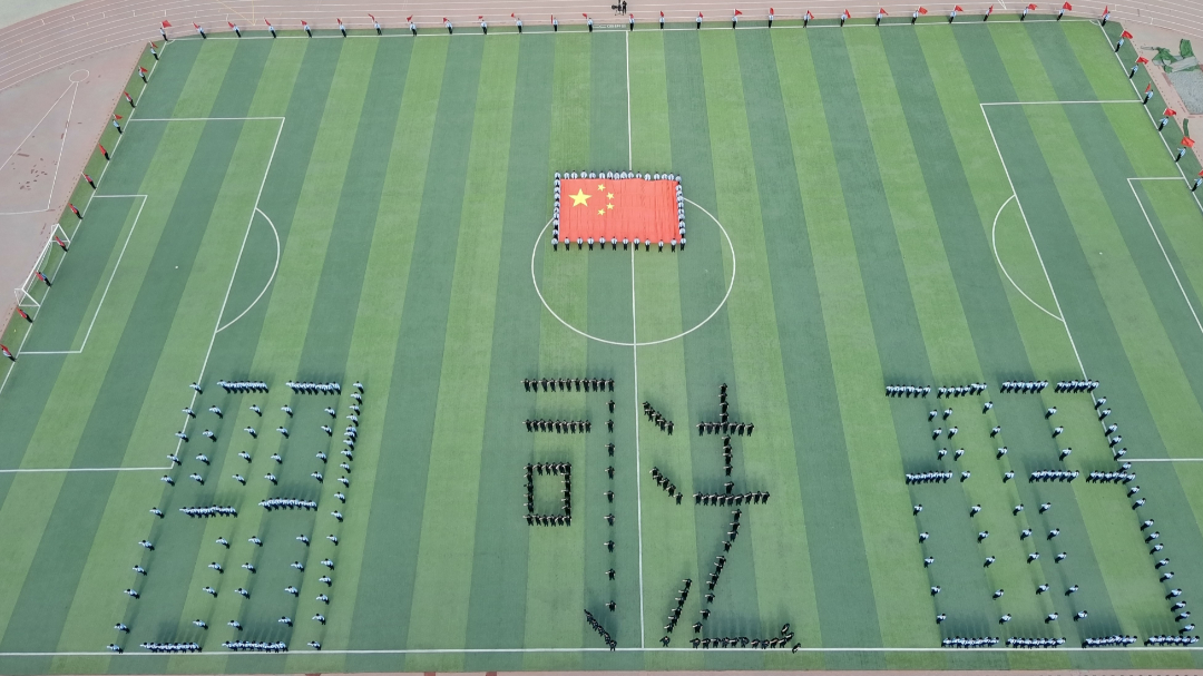 运动场上红旗迎风飘扬,全体师生警容严整、精神抖擞,开幕式大会在庄严的国歌声中拉开序幕。