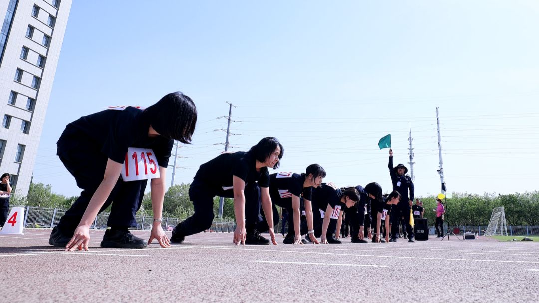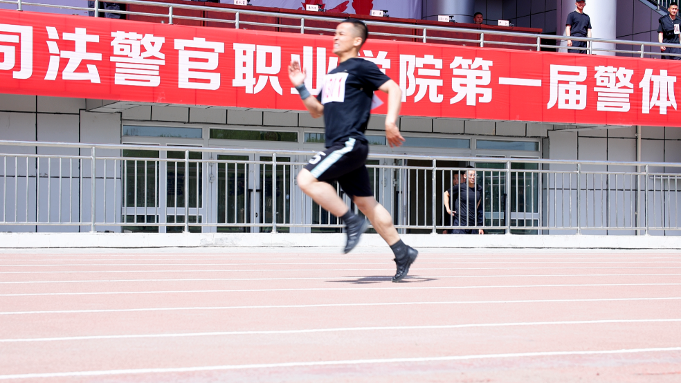 奔跑才是青春的姿态。枪声一响,学警们向着终点奋力跑去。