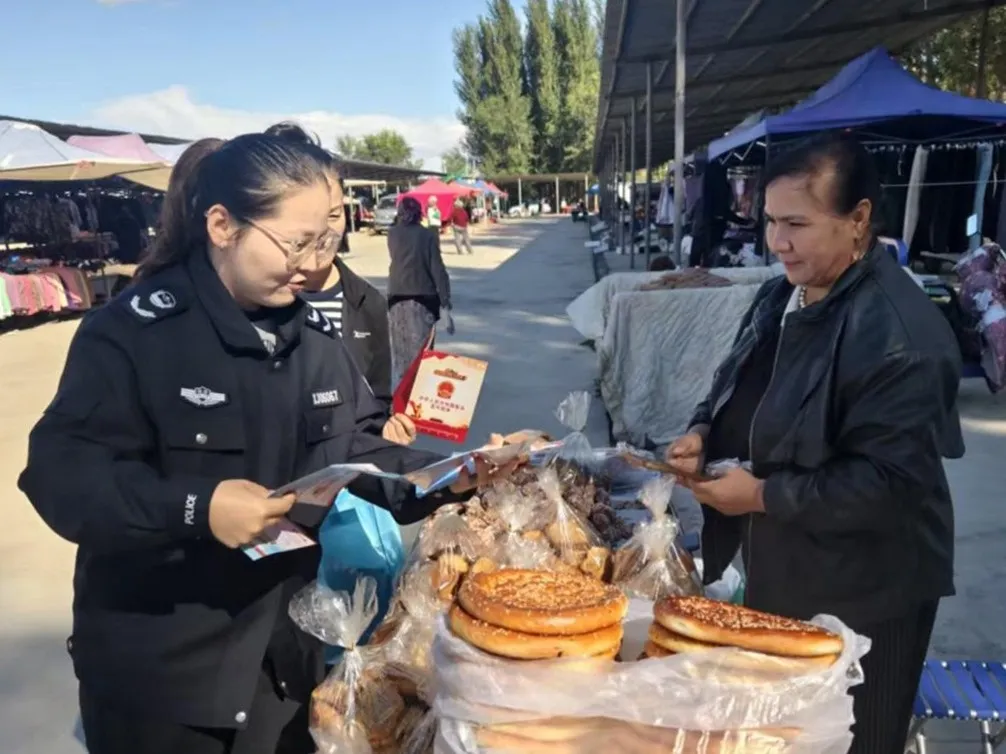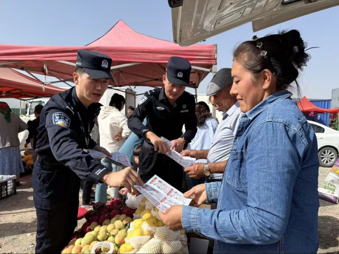 近日,新疆出入境边防检查总站克州边境管理支队阿合奇边境管理大队恰提铁列克边境派出所依托“警宣”之家走进辖区农贸市场开展“反诈宣传进商圈,守护群众‘钱袋子’”主题普法活动。民警通过设宣传点、悬挂横幅、发放手册、讲解案例等形式以案释法剖析高频骗局,并指导群众下载注册“国家反诈中心”APP,切实守护边境群众财产安全。