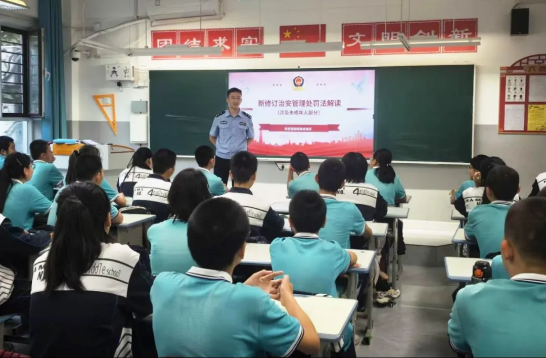 近日,哈密强制隔离戒毒所“雨润东天山”宣讲团民警以“法治副校长”身份走进市第四中学开展“新修订《中华人民共和国治安管理处罚法》涉未成年人新修订部分解读”主题法治讲座。民警结合修订背景与实际案例解析涉未成年人条款,强调“不予处罚”不等同于“不负责任”,并围绕刑事责任年龄调整等内容,引导学生树立“年龄不是护身符,守法才是安全线”观念,帮助学生扣好“法治扣子”。