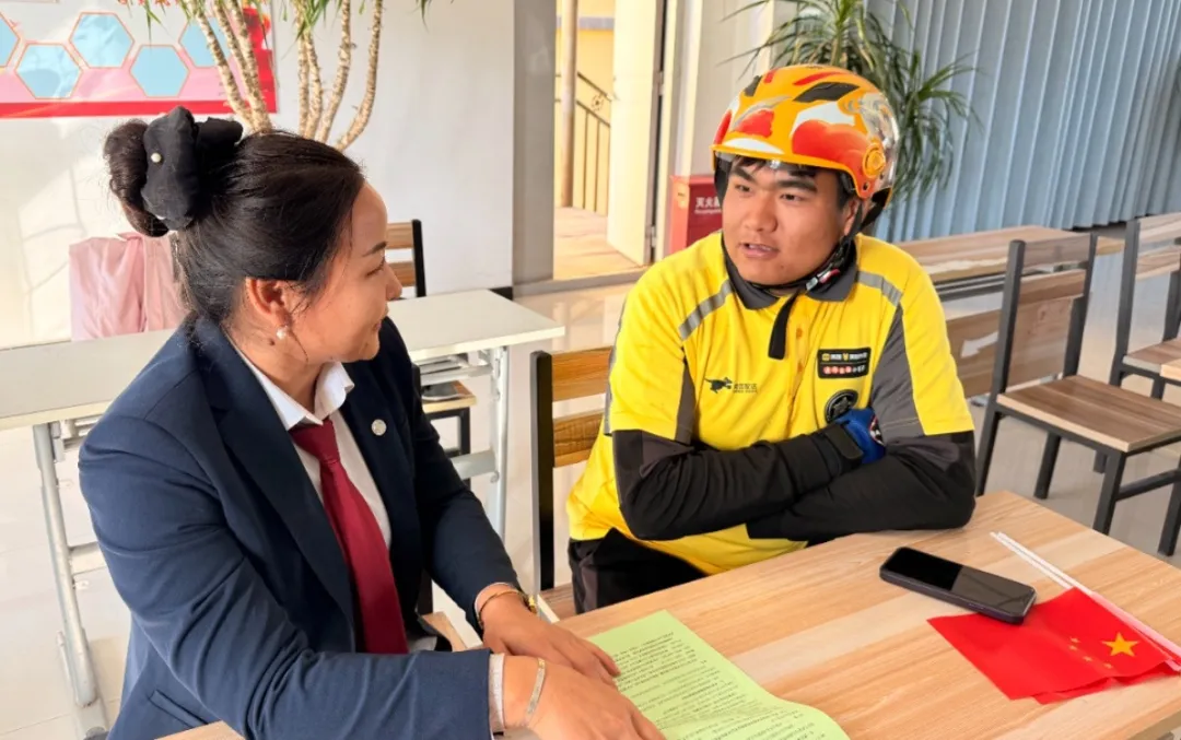 近日,伊犁州巩留县司法局深入当地外卖站点开展“聚力新业态 温情暖‘新’人”志愿服务活动。工作人员利用接单低谷时段,通过PPT宣讲、发放宣传单、律师答疑等方式,围绕劳动关系、工伤认定、交通事故责任划分、保险理赔等骑手常见法律问题,结合典型案例进行解析,为“配送侠”们送上坚实法治保障,精准护航新业态劳动者。