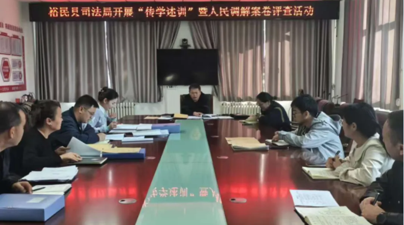 近日,塔城地区裕民县司法局组织各司法所开展“传学述训”暨人民调解案卷互查互评活动,活动先由参训司法所所长“传学述训”,再传达地区工作要求,明确基层调解方向,随后按“交叉互查+集中点评”方式,进行调解案卷全面评查,并在反馈会上推广优秀案卷亮点,以“学习先进+交叉评查+整改提升”模式,切实提升案卷规范水平与调解质效。