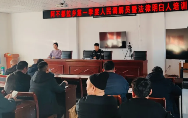 近日,塔城地区塔城市司法局阿不都拉司法所联合乡综治中心组织人民调解员和“法律明白人”开展培训会。培训围绕基层实际法治需求,聚焦春节前后常见的邻里、土地、劳务等纠纷类型,工作人员采取“理论讲解+案例分析”方式,组织参训人员学习宪法、民法典、治安管理处罚法等法律法规,讲解法律条文在调解中的适用情形,以及纠纷受理、调查取证、调解协商、协议签订等环节的规范与技巧,为预防和化解春节前后各类矛盾纠纷奠定了扎实基础。