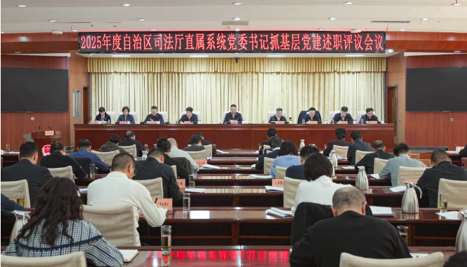 1月22日下午,自治区司法厅召开2025年度直属系统党委书记抓基层党建述职评议会。厅党委书记刘建胜主持会议,厅直属系统各单位党委书记依次进行大会述职,按照“一述一评”要求,刘建胜同志逐一作点评,厅二级巡视员,厅机关各党支部书记及党员代表和各行业协会党员会长、党员秘书长参加会议并进行评议。