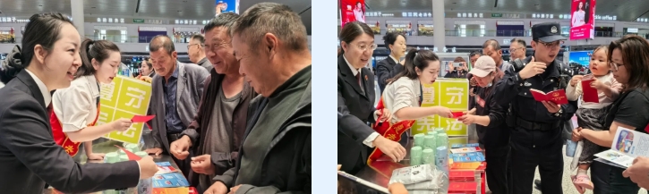 近日,乌鲁木齐经开区(头屯河区)司法局高铁司法所联合乌鲁木齐站派出所、铁路运输检察院,在候车大厅“摆摊设点”,将宪法和国家安全知识送到旅客身边。醒目的宣传展板、琳琅满目的普法手册和宣传品吸引不少旅客驻足,工作人员用通俗易懂的语言结合案例讲解国家安全相关法律知识,旅客在互动答题中加深对国家安全“红线”的认识,“流动宣传队”穿梭在座椅间,为旅客提供“一对一”普法服务,提醒大家“旅途路上,守法为先”。