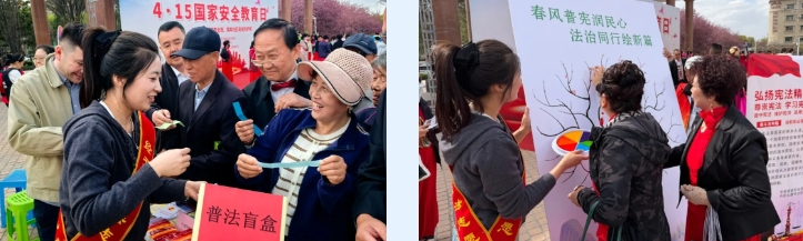 近日,乌鲁木齐经开区(头屯河区)司法局中亚南路司法所联合中亚南路街道办事处、卫星路社区等多家单位,在卫星广场开展普法活动。各单位精心筹备,将国家安全、法治宣传融入文艺演出,传递安全理念,工作人员以“春风普宪润民心 法治同行绘新篇”为主题,用一棵法治树为载体,邀请居民拓印宪法标语、国家安全标识、法治格言,趣味的法治竞答更是将活动推向高潮,让法治宣传从“单向灌输”变为“双向互动”,真正走进群众、贴近民心。