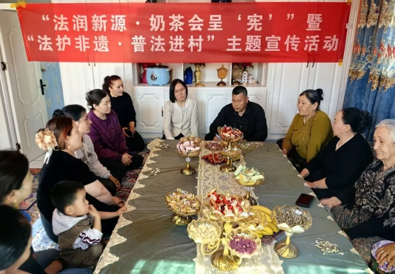 在新源县兴钢镇铁木里克村,各族群众围坐毡房,司法所工作人员与普法志愿者以奶茶会商纠纷,在闲话家常中倾听诉求、化解矛盾,将邻里纠纷消弭于萌芽,同时,巧妙借助国家级非物质文化遗产“阿肯弹唱”,把民法典、未成年人保护法等法律条款编成朗朗上口的唱词,在冬不拉琴声中倡导抵制高价彩礼、尊老爱幼的文明新风;坎苏镇哈萨克买里村则充分调动非遗传承人加入“法律明白人”队伍,开展“法润新源·奶茶会呈‘宪’”主题活动,非遗传承人加合努·吾哈斯以“阿肯弹唱+法治宣讲”融合演绎,让宪法精神与非遗韵味交相辉映,使群众在艺术熏陶中领悟法治内涵;阿热勒托别镇喀拉盖勒苏村与阿勒玛勒镇台勒哈拉社区,将普法课堂搬进“法治茶话会”,司法所联合村“两委”、法院书记员,围绕婚姻家庭、土地承包、国家安全等高频关切问题,用“家常话”以案释法,现场答疑解惑。热气腾腾的奶茶映照着法治温情,群众在拉家常式的交流中懂法守法,纷纷点赞这种“接地气”的普法新模式。