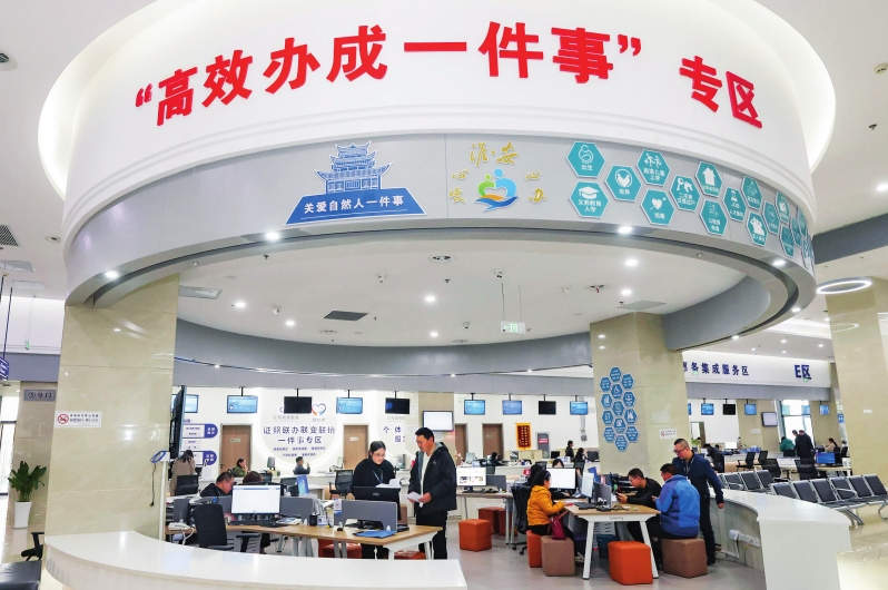 市民在江苏淮安经济技术开发区政务服务中心“三联办”服务专区办理业务(2026年4月9日摄)。新华社发(赵启瑞摄)
