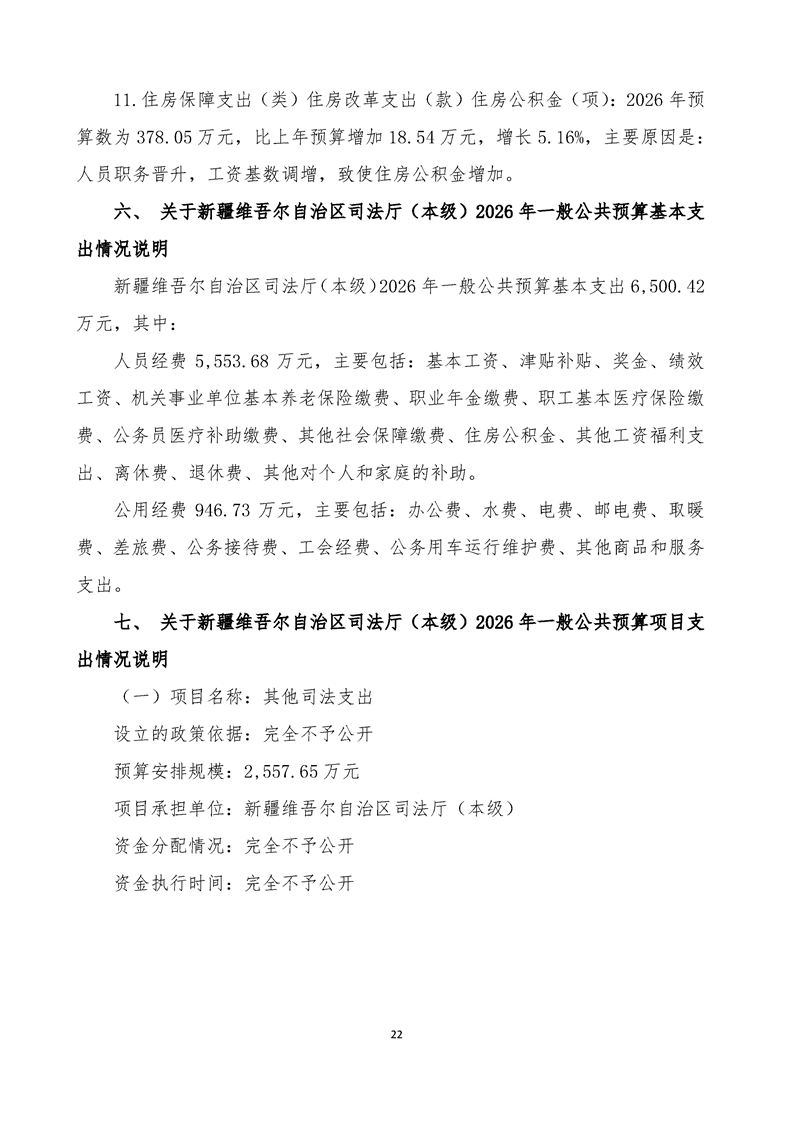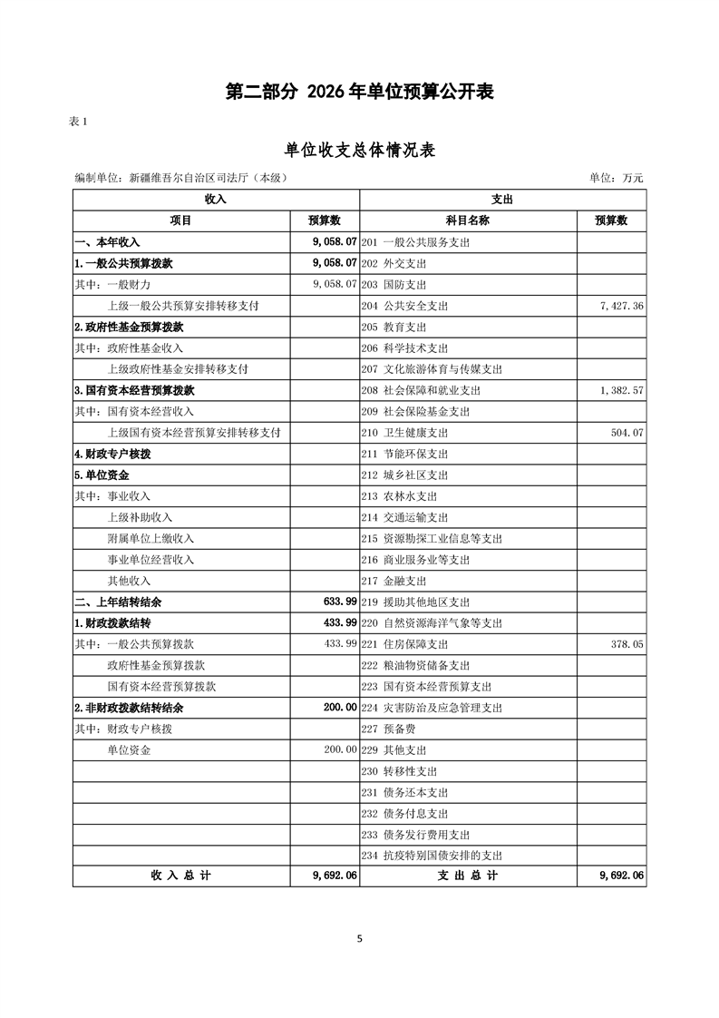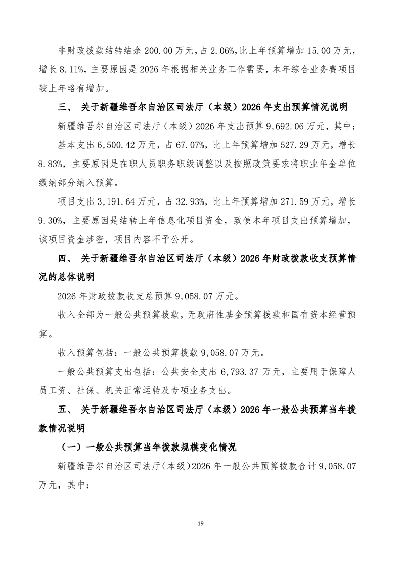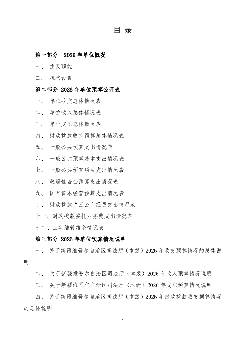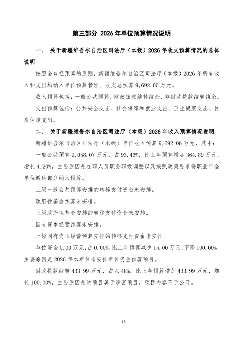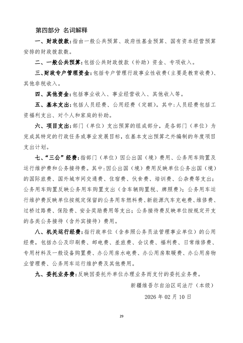 新疆维吾尔自治区司法厅(本级)2026年单位预算公开