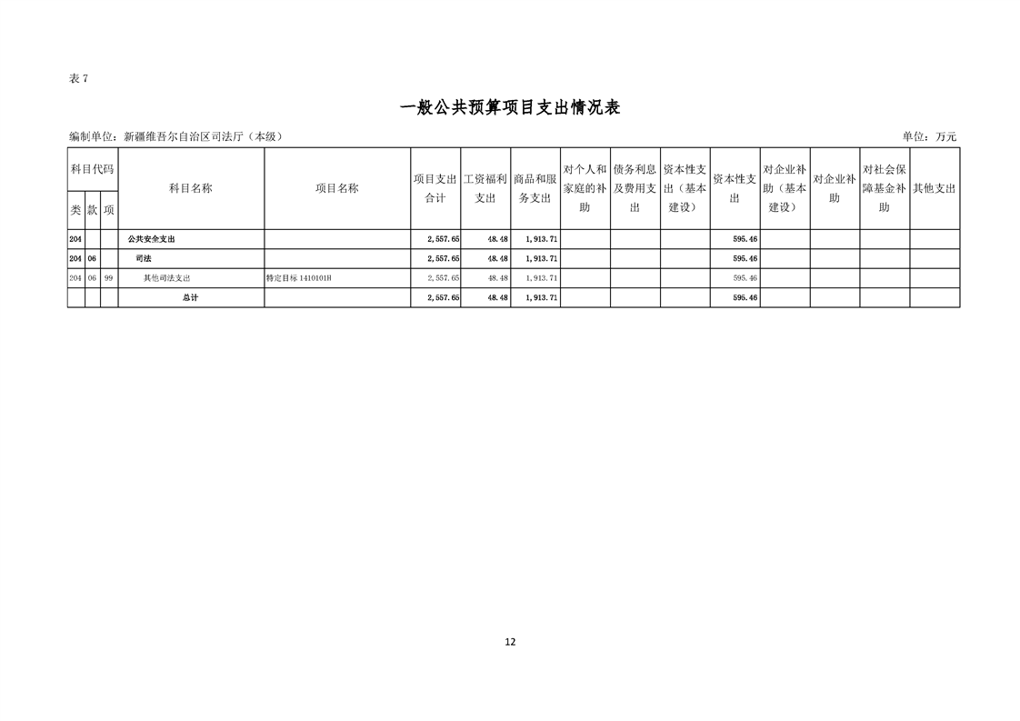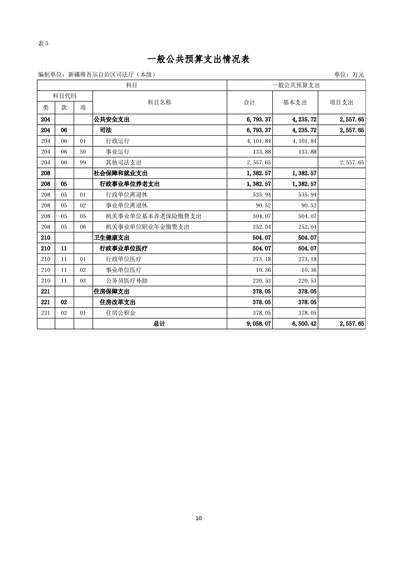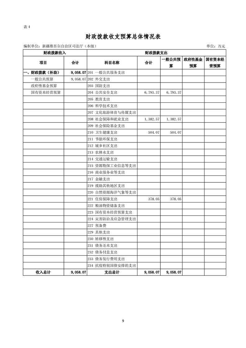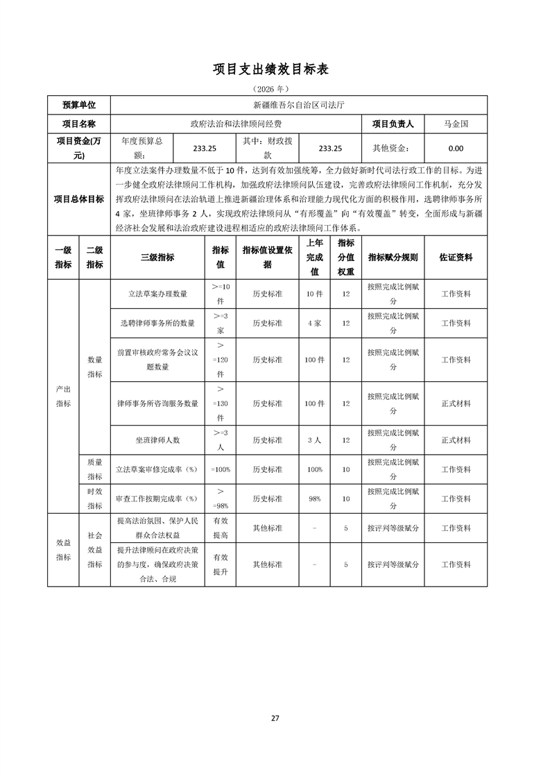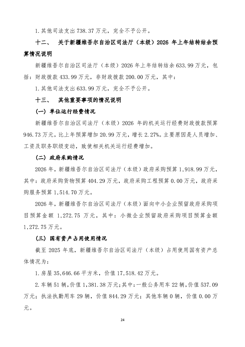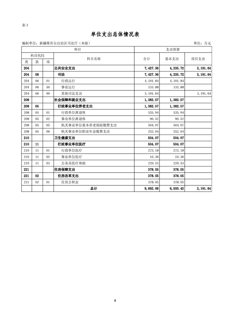 新疆维吾尔自治区司法厅(本级)2026年单位预算公开