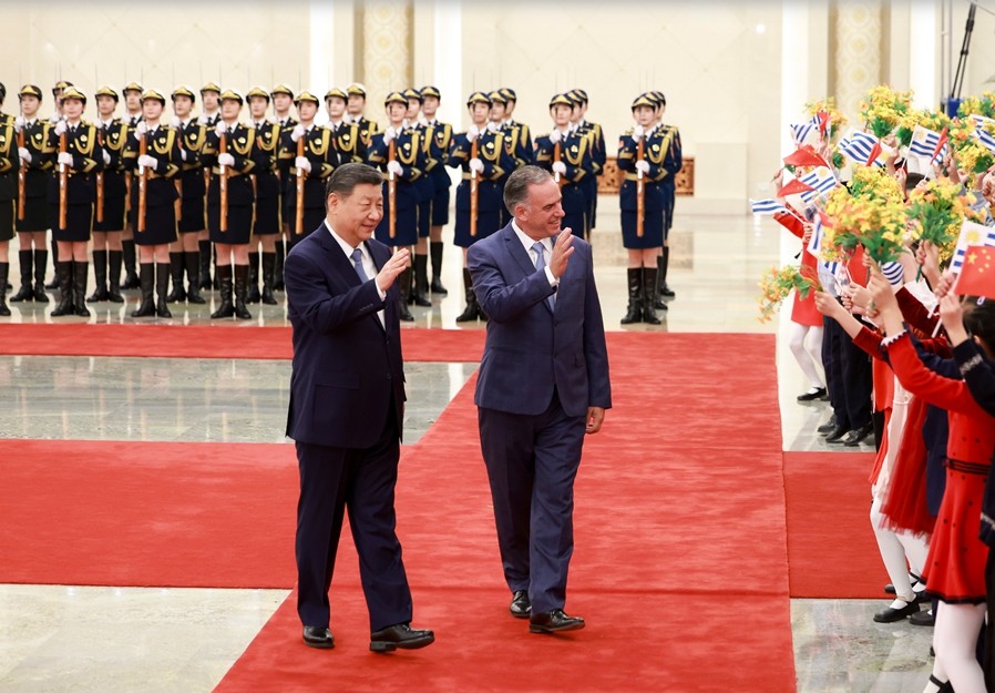 习近平强调,中乌两国要继续坚定支持彼此核心利益和重大关切,密切各层级、全方位友好交往,加强治国理政经验交流,不断深化战略互信。中共二十届四中全会通过“十五五”规划建议,为未来5年中国经济社会发展擘画蓝图,也为包括乌拉圭在内的各国提供更多机遇。双方要加强发展战略对接,深化经贸、金融、农牧业、基础设施建设、信息通信等合作,挖掘绿色发展、数字经济、人工智能、清洁能源等新兴领域合作潜力,推动经济增长转型升级。中国和乌拉圭人民有着天然亲近感,双方要持续深化文化、教育、体育、媒体、地方等交流,便利人员往来,促进民心相通。