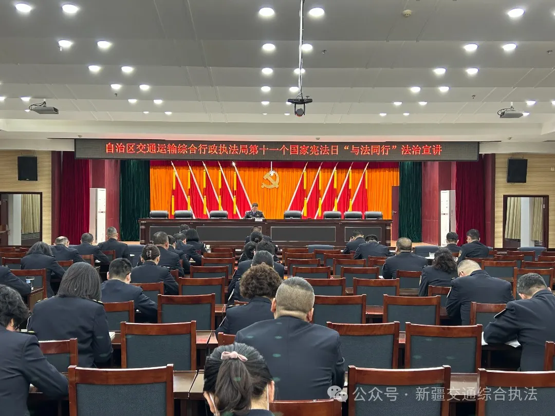 为深入学习贯彻宪法精神,优化法治化营商环境,以法治护航自治区经济社会高质量发展。12月4日,自治区交通运输综合行政执法局举行第十一个国家宪法日“与法同行”为深入学习贯彻宪法精神,优化法治化营商环境,以法治护航自治区经济社会高质量发展。12月4日,自治区交通运输综合行政执法局举行第十一个国家宪法日“与法同行”法治宣讲活动,局党委书记、副局长郑明权以“全面贯彻党的二十届三中全会精神以法治护航交通运输高质量发展”为题,给局机关干部上了一堂生动的法治课。