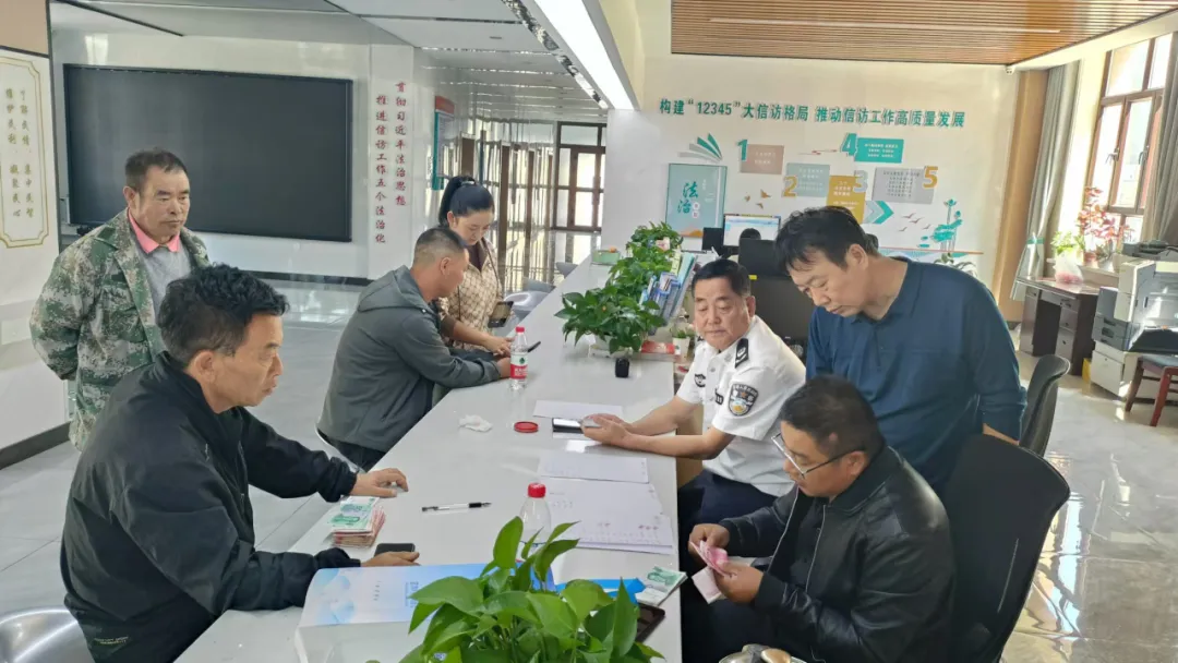 “大哥,这笔钱终于要上了,多亏你们耐心调解,真的太谢谢你们了……”拿到用人单位当场兑付的首笔劳动报酬后,杨某、老刘等人围着矛调中心人民调解员连声道谢,并为人民调解员严谨高效、为民服务的工作作风点赞。