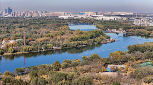 这是2024年11月5日拍摄的北京城市副中心和大运河森林公园。