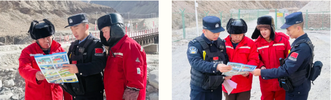 近日,克州边境管理支队阿合奇边境管理大队恰提铁列克边境派出所组织“蓝盾先锋”普法小分队深入辖区在建工地,开展“送法进工地”专题法律宣讲。民警结合边境辖区特点与工地实际,通过以案释法、面对面讲解、互动答疑等形式,宣讲陆地国界法、治安管理处罚法等法律法规,细致讲解流动人口登记、劳动合同签订、工资维权、工伤保障、消防安全、反诈防骗等务工人员高频需求,明确严禁非法越境、违规作业、跨境赌博、电信网络诈骗等法律红线,用案例讲清违法成本,引导大家依法维权、依规作业、守边护边。