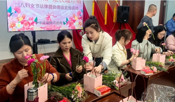 近日,北站西路司法所联合河南庄村,在社区活动室内开展“情暖三月 法护芳华”迎三八主题普法宣传活动。活动将法治宣传与插花艺术、趣味游戏相结合,社区特意邀请花艺老师为妇女姐妹讲授插花艺术,指导大家制作花艺作品,司法所工作人员和社区志愿者精心设计“法律知识趣味竞答”和“法治盲盒”等小游戏,将民法典、妇女权益保障法、反家庭暴力法等法律条文转化为通俗易懂的问题,让大家在轻松愉快的互动中学习法律知识,介绍法律援助的申请条件和流程,引导大家学会运用法律武器维护自身合法权益。