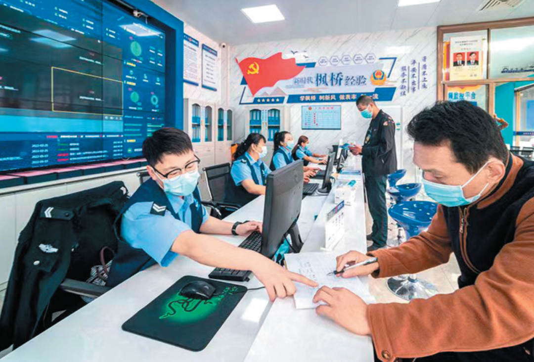 “枫桥经验”是中国特色的基层治理经验。60年来,“依靠群众就地化解矛盾”的“枫桥经验”不断被赋予新的内涵,成为基层社会治理的一面旗帜。要坚持和发展新时代“枫桥经验”,维护群众合法权益,促进社会和谐稳定,推进更高水平的平安中国建设。图为福建省莆田市城厢区龙桥街道“综治”社区治理中心。蔡昊/摄