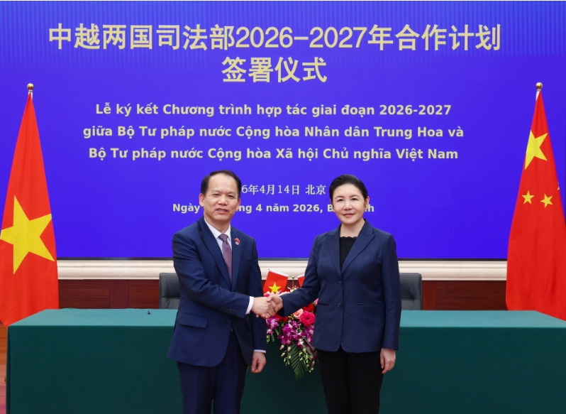 近日,司法部部长贺荣在京会见越南司法部部长黄青松一行。双方就健全边境边民民商事纠纷解决机制,深化律师、公证、法治宣传教育、人才培养等方面合作进行了务实深入交流,并签署了《中华人民共和国司法部与越南社会主义共和国司法部2026-2027年合作计划》。
